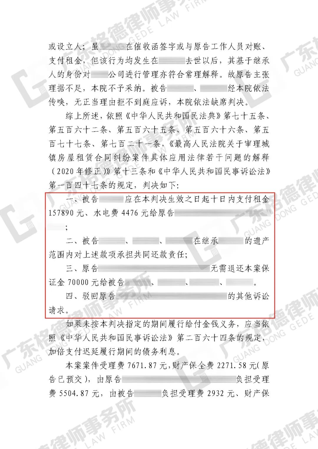 案件情况:当事人及其丈夫因经营不善欠付商铺租金,在丈夫离世后无力经营,解除了租赁合同,合同解除后仍有部分租金及水电费未支付。