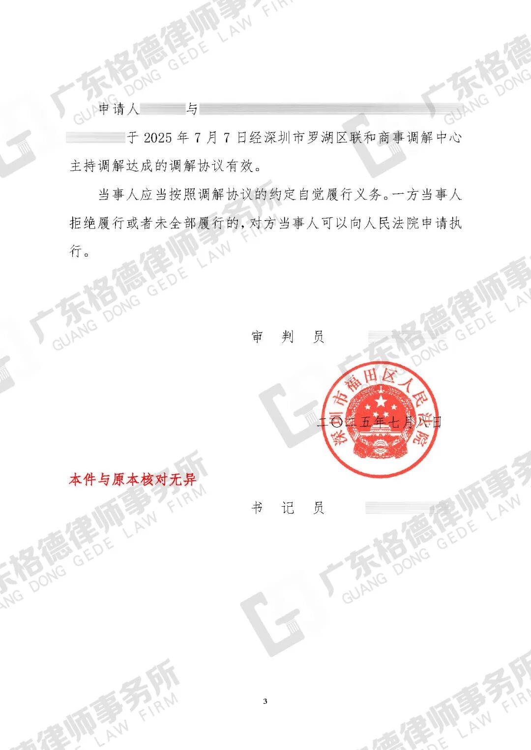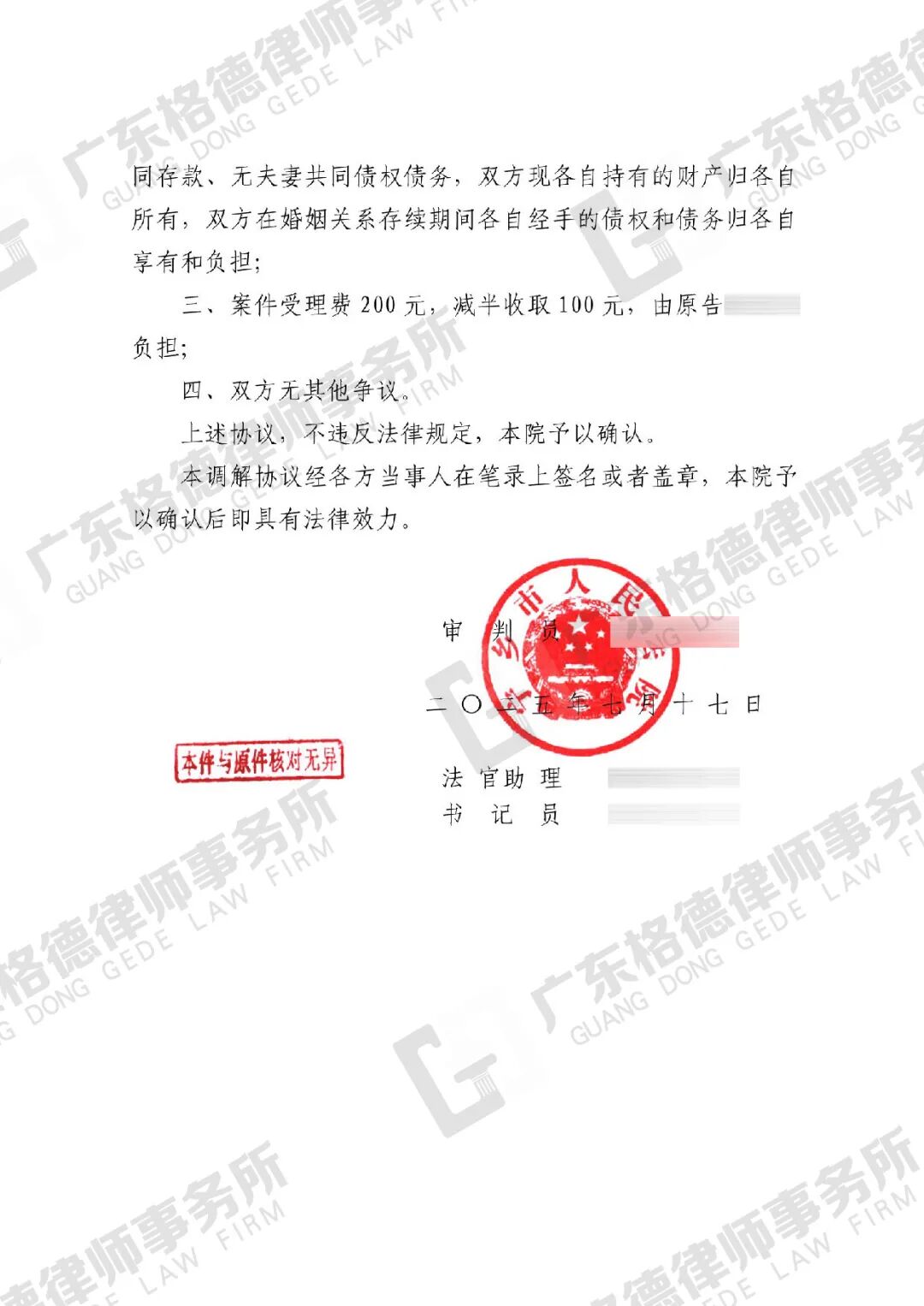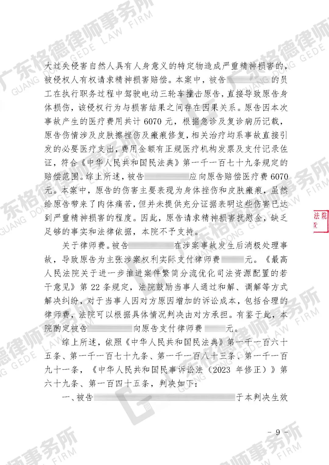 案件结果:帮助双方达成调解,有效化解矛盾恩怨,并为当事人减少60%的赔偿金额。