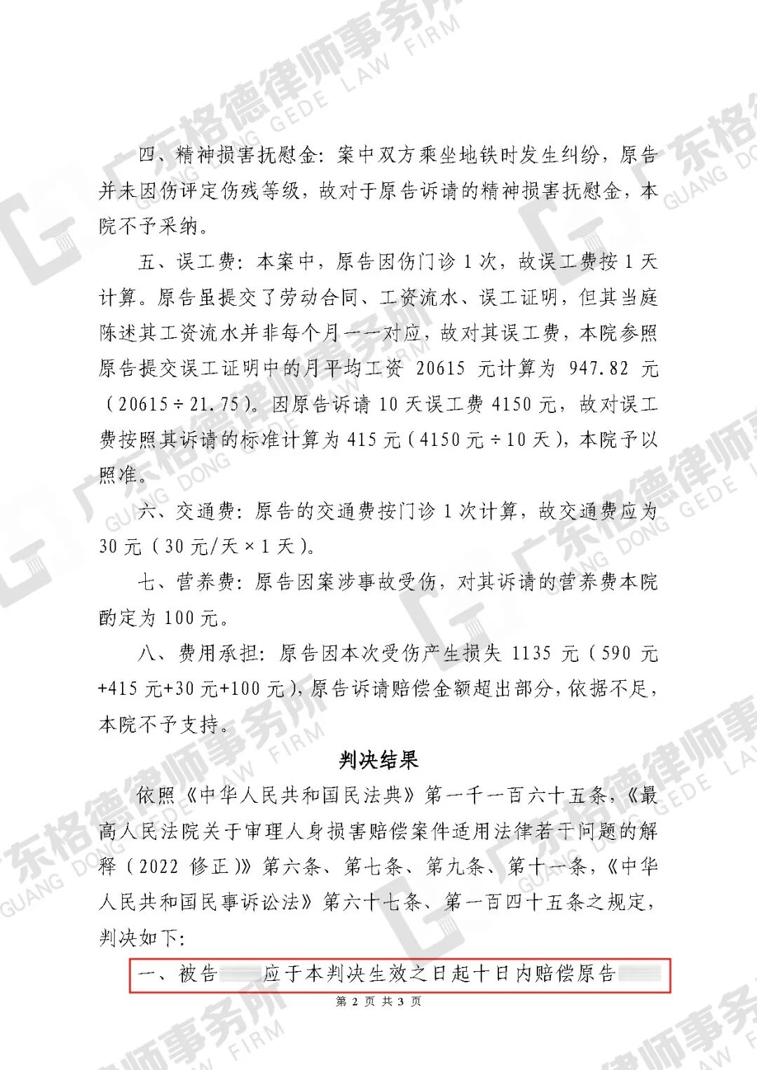 案件结果:为当事人减少赔偿8000余元。