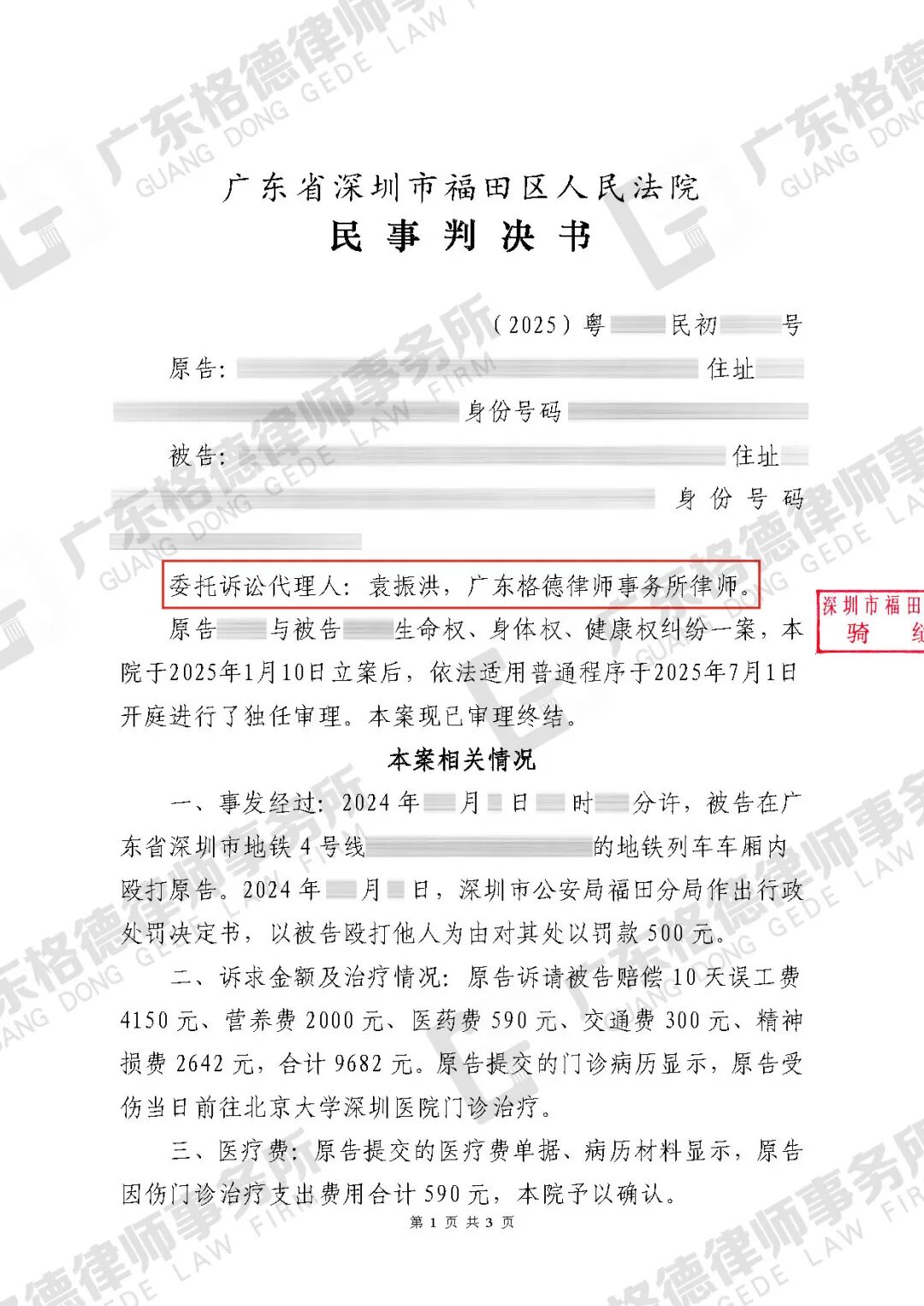 案件情况:当事人在地铁上与原告发生纠纷,情绪激动之下对对方进行了殴打。