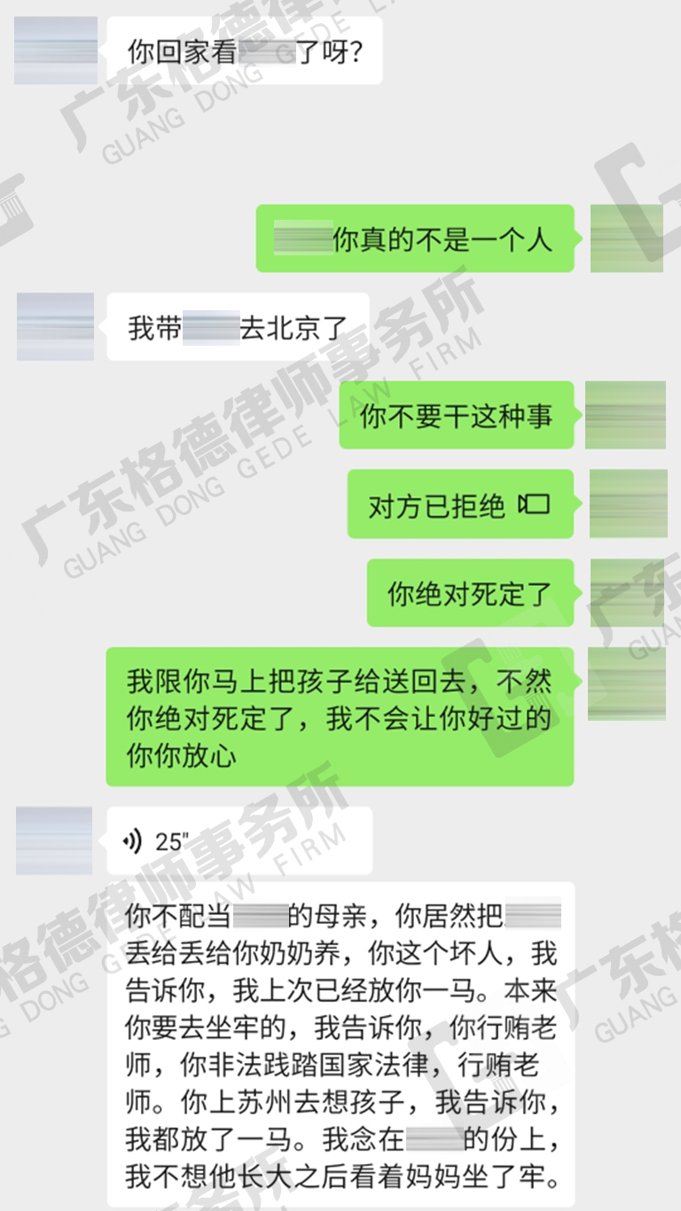 许丹得知这个消息后感到万念俱灰,多次通过微信、电话联系方廷,可对方压根不愿透露孩子的具体位置,更别说让许丹与孩子再见一面。在感到无助之际,她来到了格德律师事务所寻求帮助。