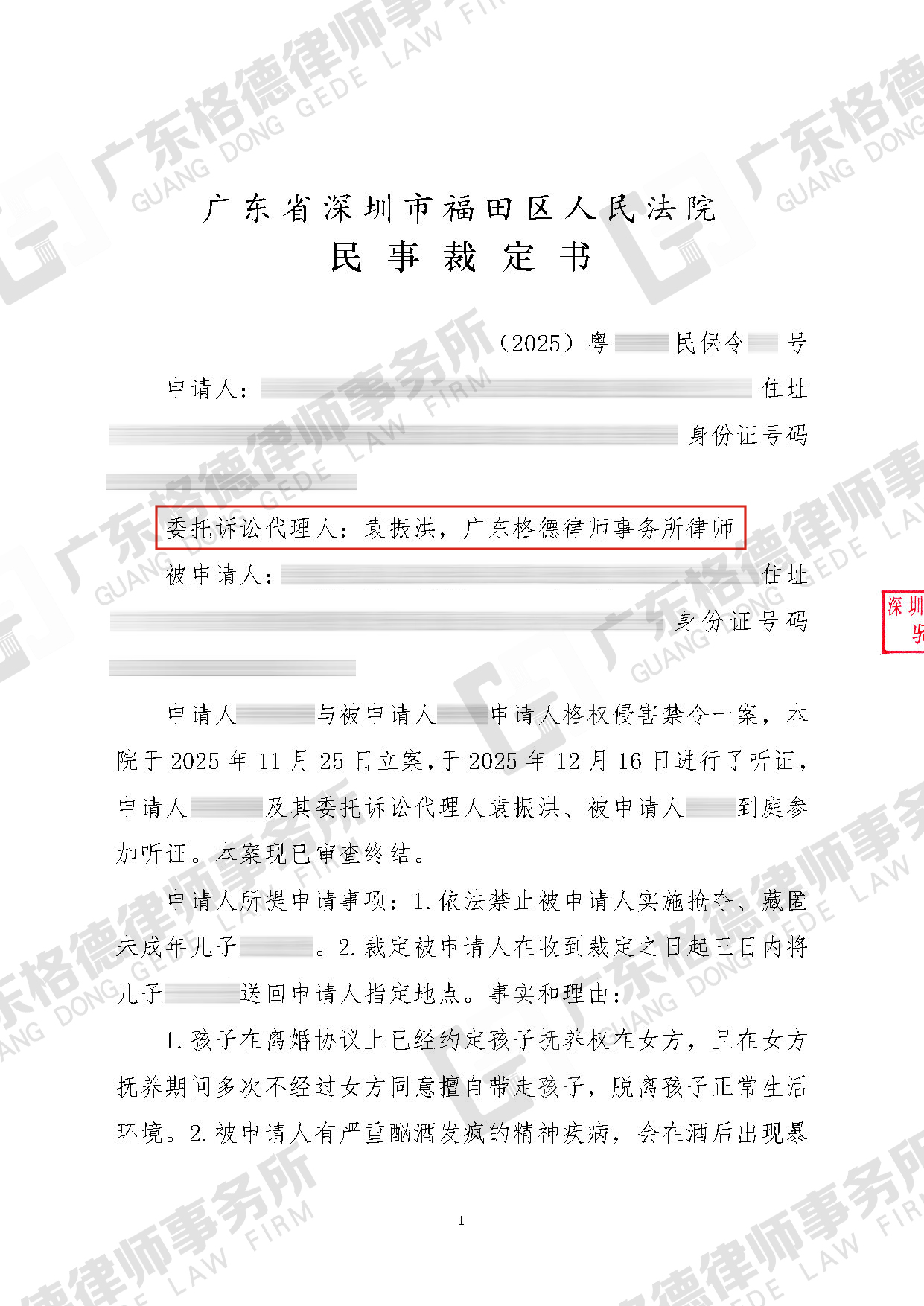 成功案例 | 离婚后竟遭前任“抢孩子”,格德律师先行实践助当事人监护权得以维护。