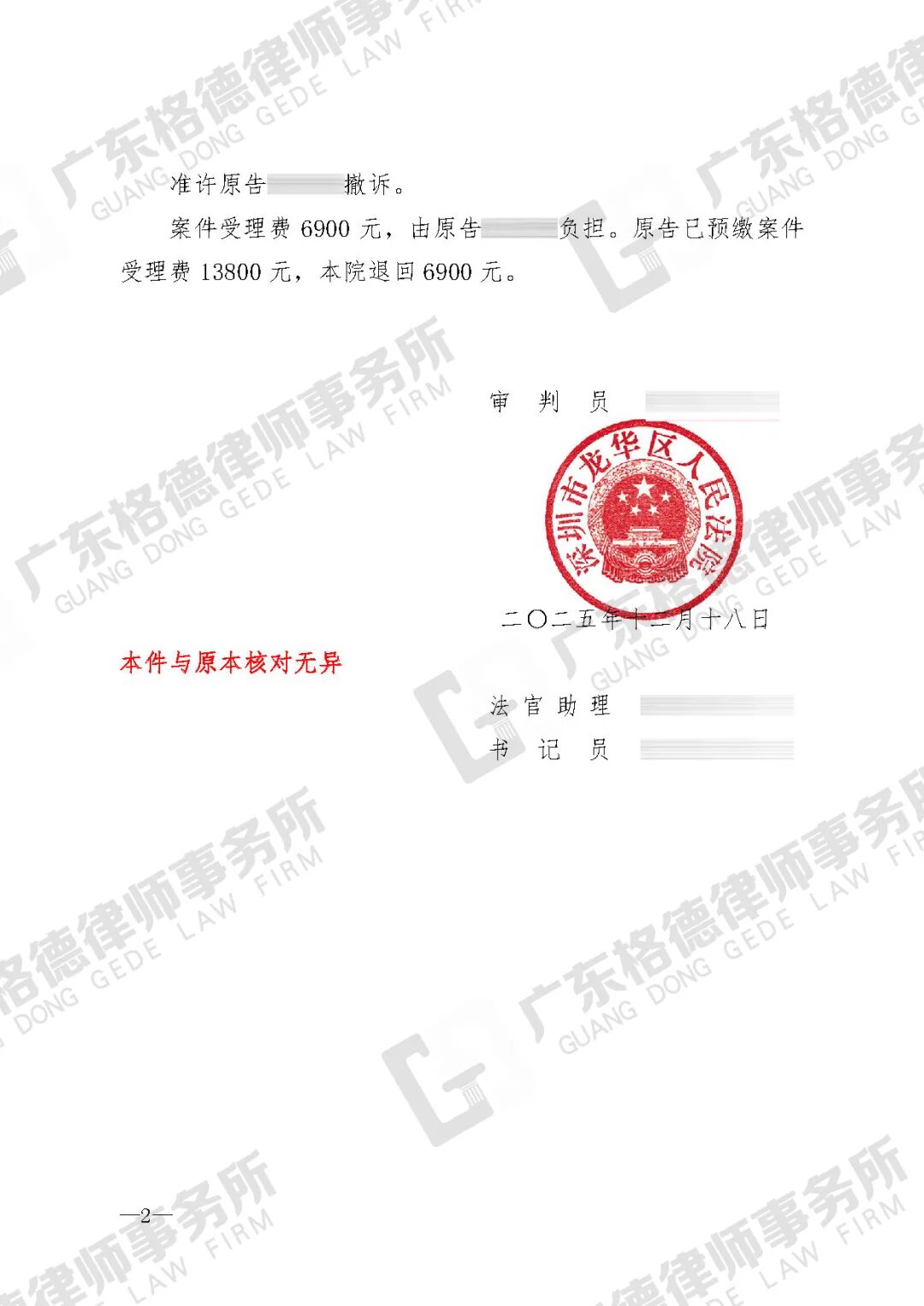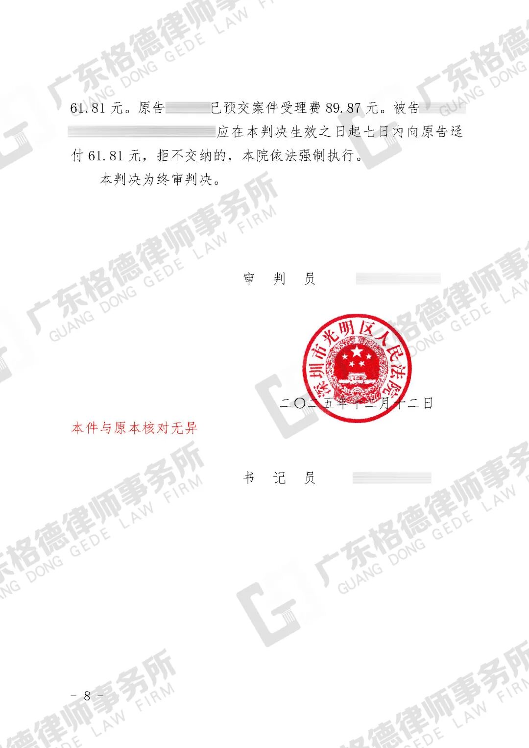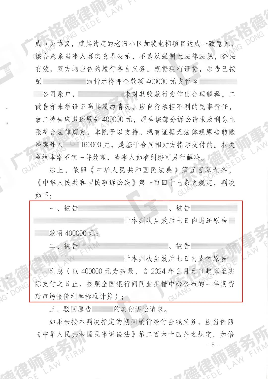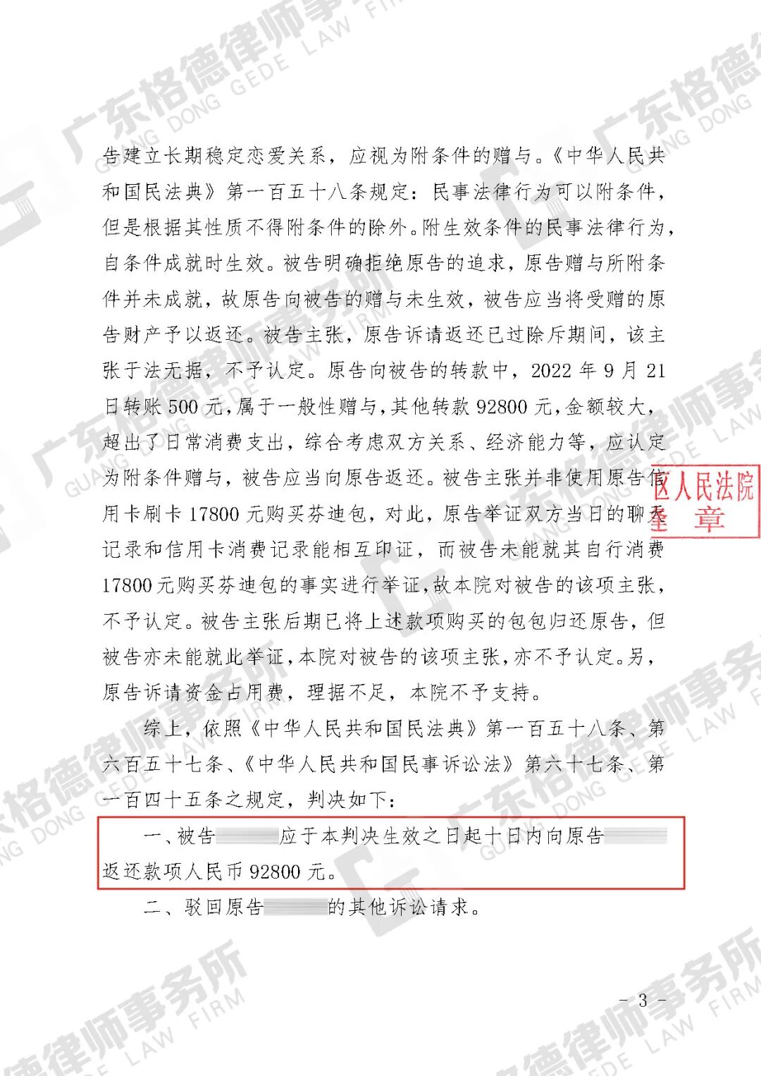 案件结果:律师团队成功为当事人减少约92万元返还金额。