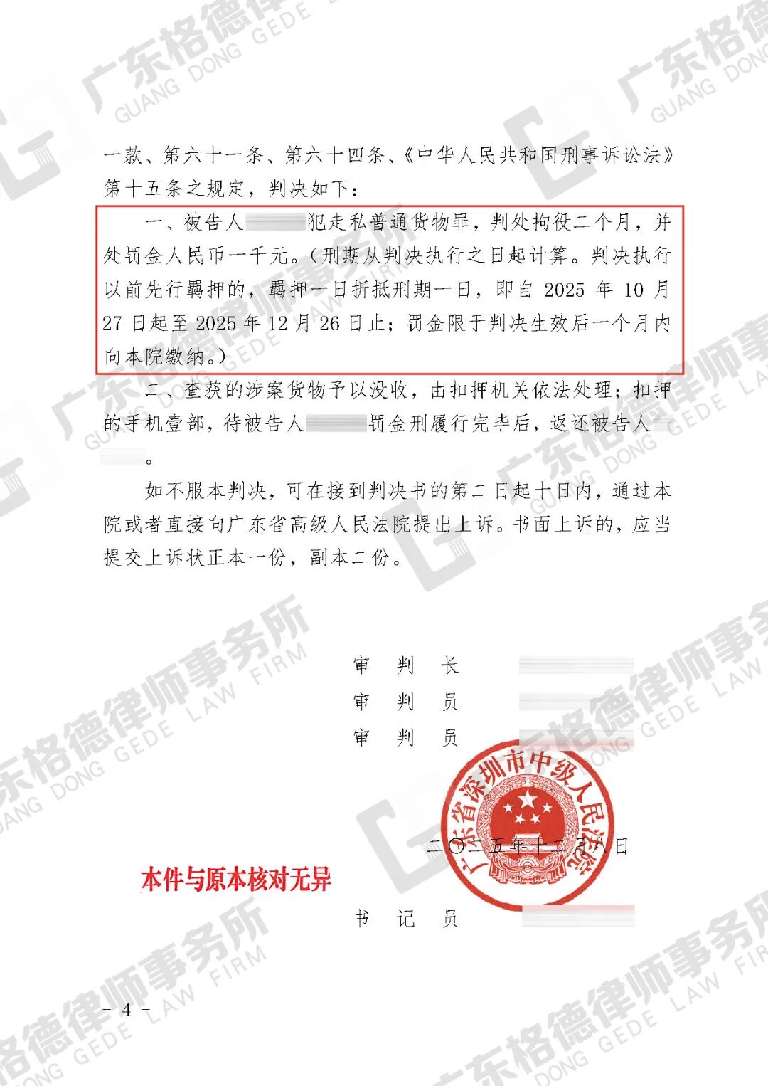 案件结果:在开庭审理中,律师团队的罪轻辩护得到采纳,最终判处拘役两个月。在折抵刑期后,其刑期已届满,当事人得以尽早回归社会。