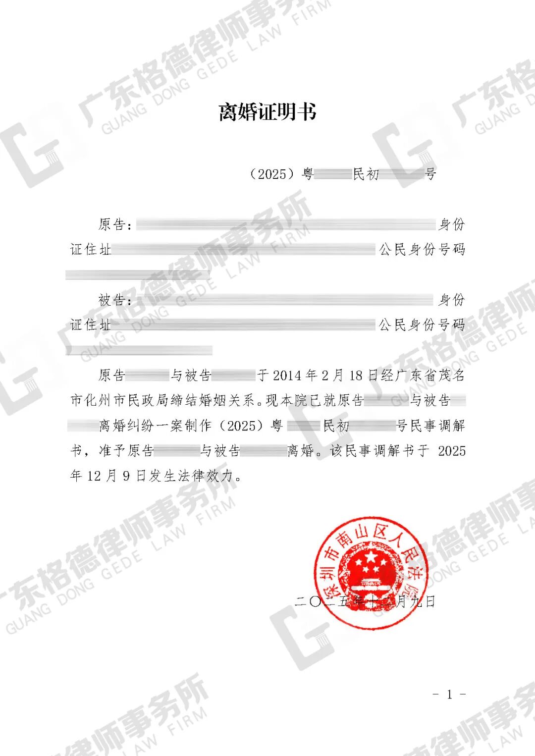 委托起诉成功调解离婚