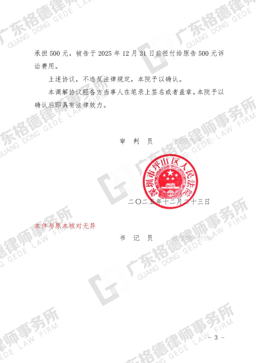 案件结果:双方达成调解,公司需向当事人支付调解款15000元。