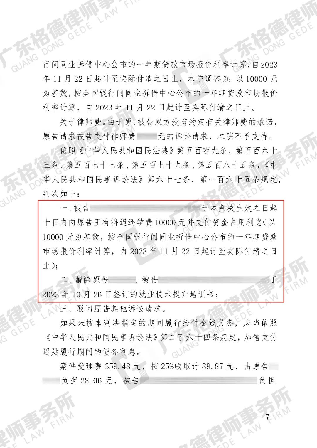 案件结果:判决该培训机构向当事人退还学费10000元并支付资金占用利息。