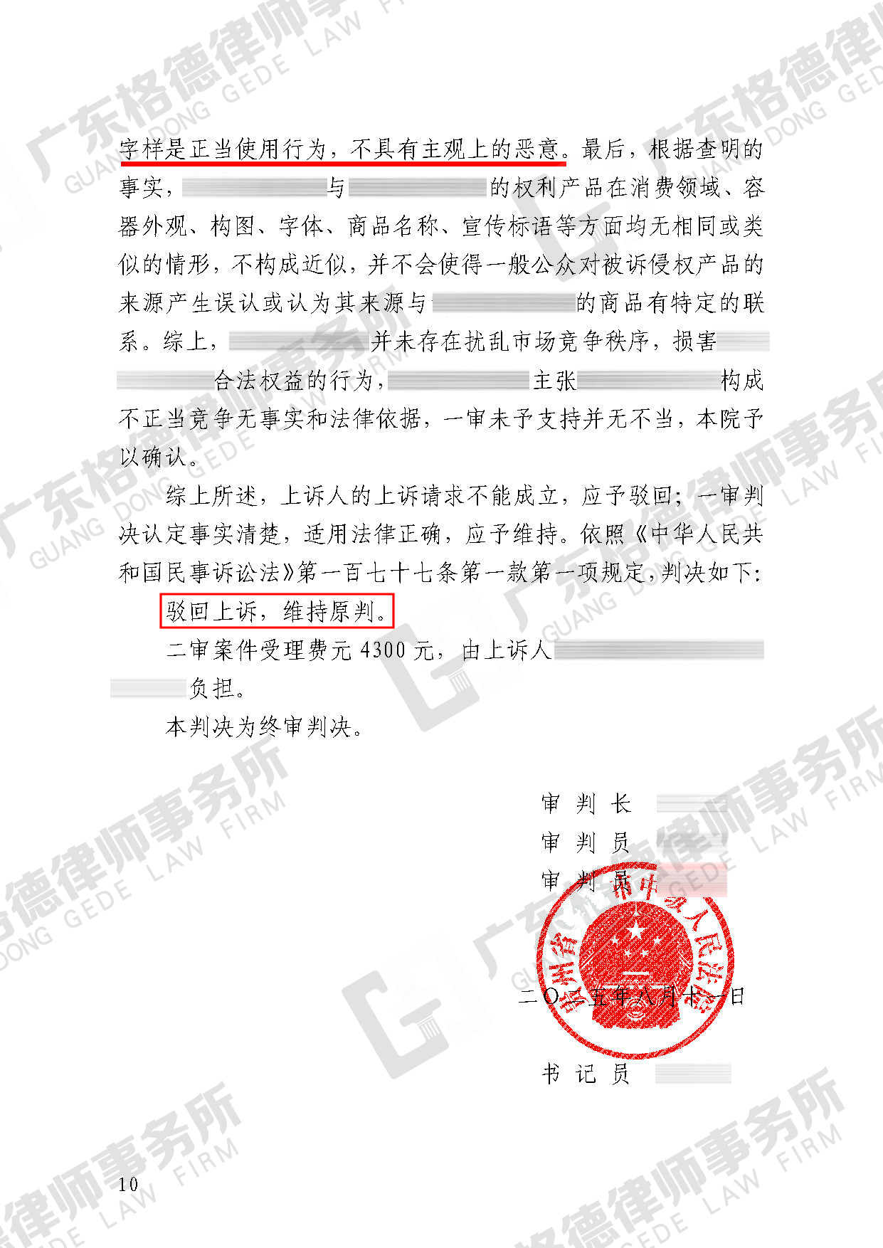 面对一审判决,外地酒企提起上诉。二审法院经审理后,认可了我方的观点,认定一审判决无误,最终裁定维持原判,驳回上诉