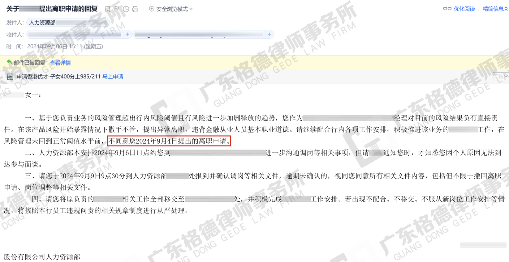 令人意外的是,就在约定达成后的次日,公司态度便发生了大反转。次日上午,徐悦尝试发起系统的离职流程时突然发现权限已被限制,在咨询人力资源部门后得知,其所属部门已被强制变更至此前提及的调岗部门;随即,徐悦便收到了人力资源部的正式邮件,公司在邮件中告知其离职申请已被驳回,要求徐悦立即前往成都协商调岗事宜。不仅如此,公司当日便关闭了徐悦在深圳办公地的打卡权限,强制要求其到成都办公地打卡,否则按旷工处理。面对公司单方面推翻约定的行为,徐悦当即明确表示拒绝,并向多位上级领导反馈,但均未获得有效回应。