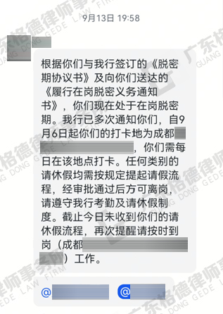 为妥善推进离职事宜,徐悦从深圳赶赴成都与总部沟通,不料公司态度依旧强硬,坚持要求其在成都履职,并以双方入职时签订的《履行在岗脱密义务通知》为由,要求其在成都的岗位履行六个月脱密义务。但当徐悦问及该岗位的薪酬标准、具体职责及考评方案等信息,公司却迟迟未作出明确说明,谨慎的徐悦自然没有答应公司的要求。