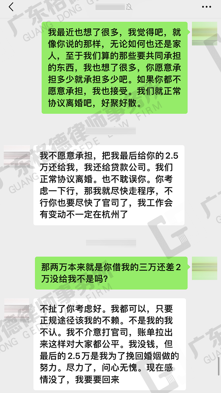 对此,律师团队基于李哲的诉求,重新调整办案方向,并及时向对方传达我方搁置争议的意愿。初次沟通,面对对方在财产分割和债务认定上的紧绷态度,律师团队调整了沟通思路,以顾情理、讲事实的方式传达我方的诉求。在后续的沟通中,律师团队在保证李哲利益的前提下,充分了解对方的诉求,释明财产分割争议所涉及的法律条文及类案处理结果。