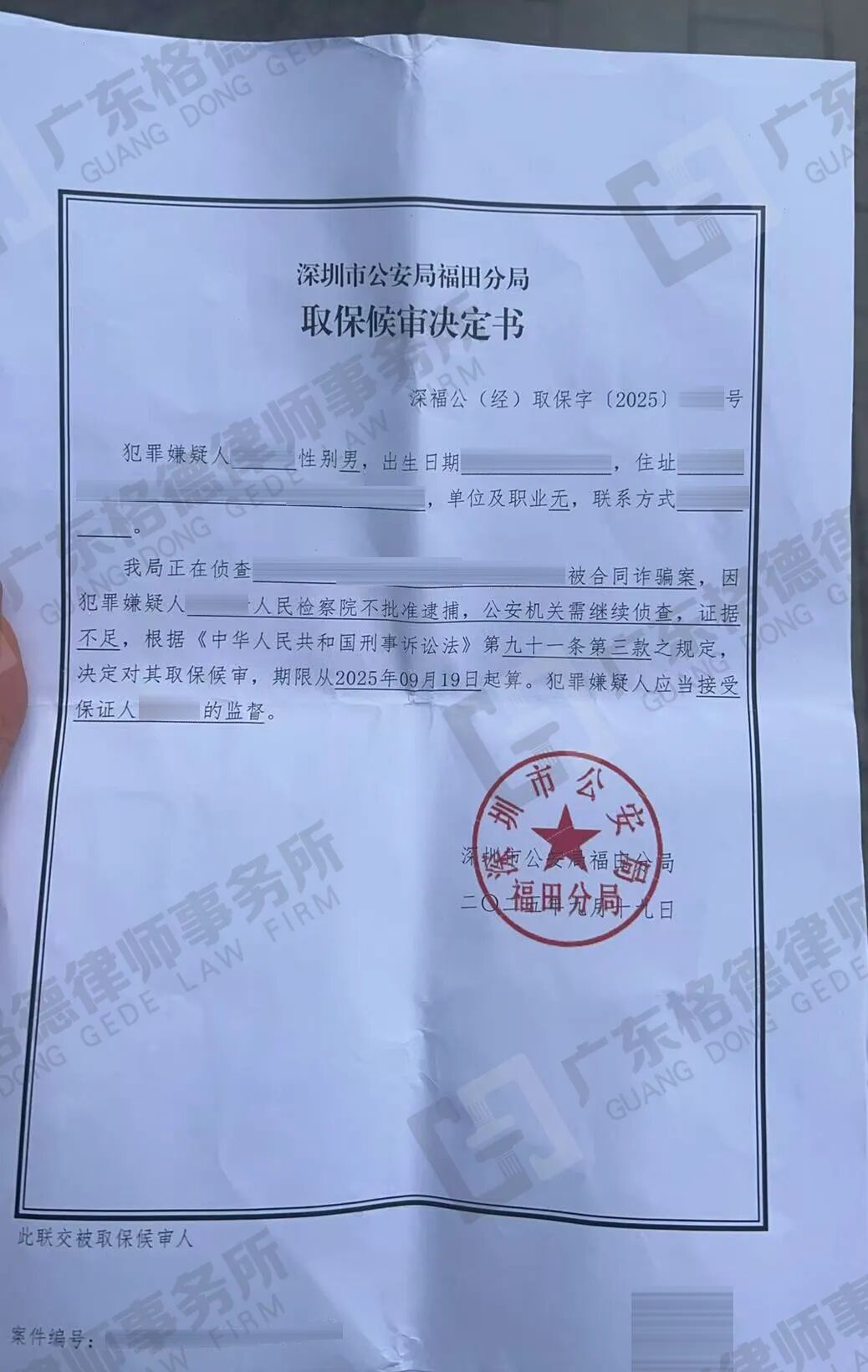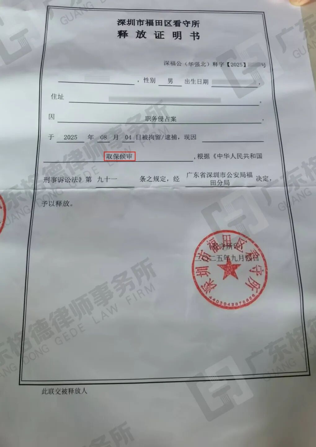 案件结果:律师团队经会见后了解详细案情,结合案件实际情况提交取保候审申请书,最终经二次取保,成功为当事人争取取保候审且不予批准逮捕。