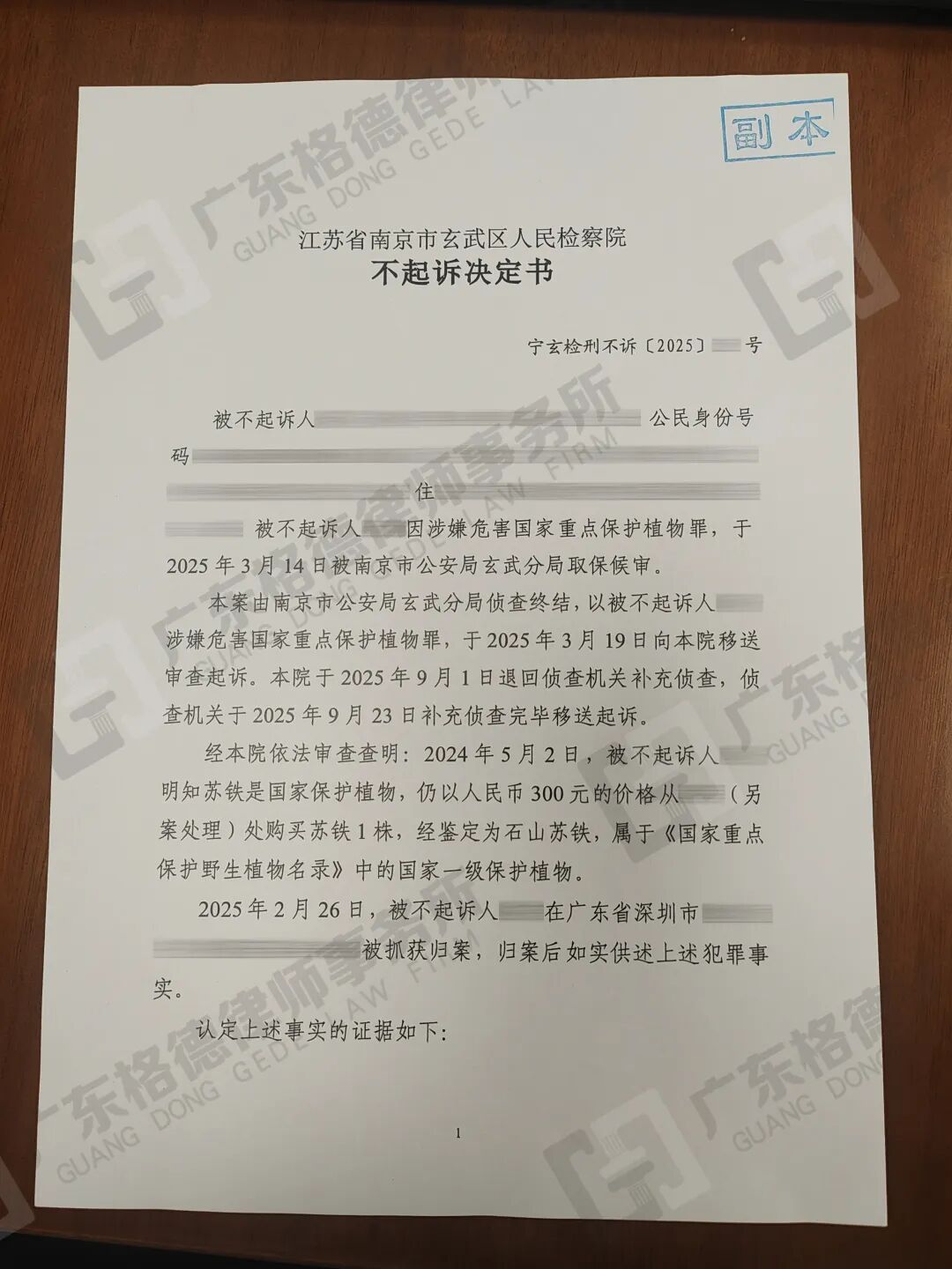案件情况:当事人意欲购买植物用以装饰,遂怀着侥幸心理购买了一株石山苏铁,该植物为国家一级保护植物,后当事人被公安机关抓获。