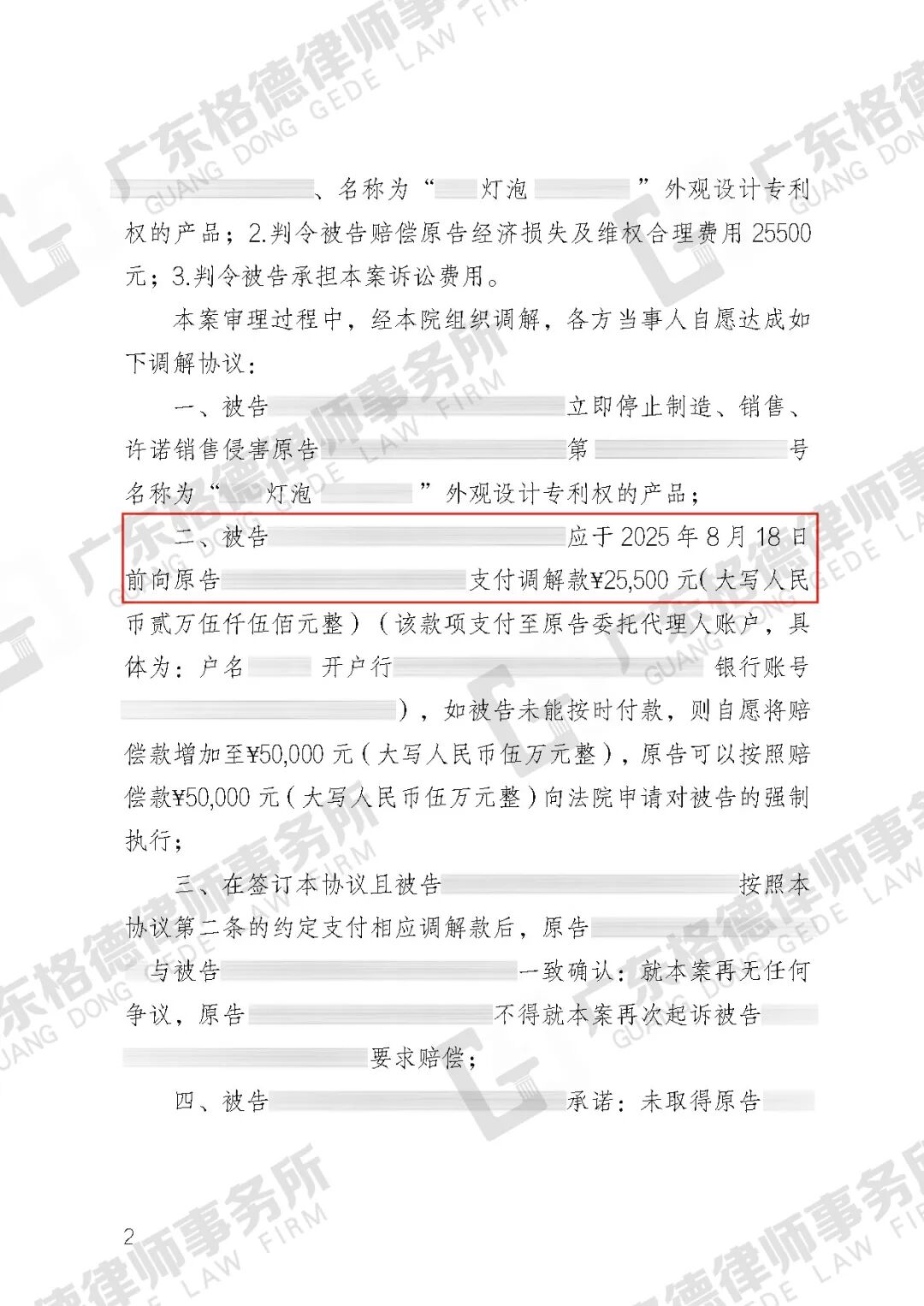 案件结果:以25500元的金额达成和解,为被告减损74500元赔偿。