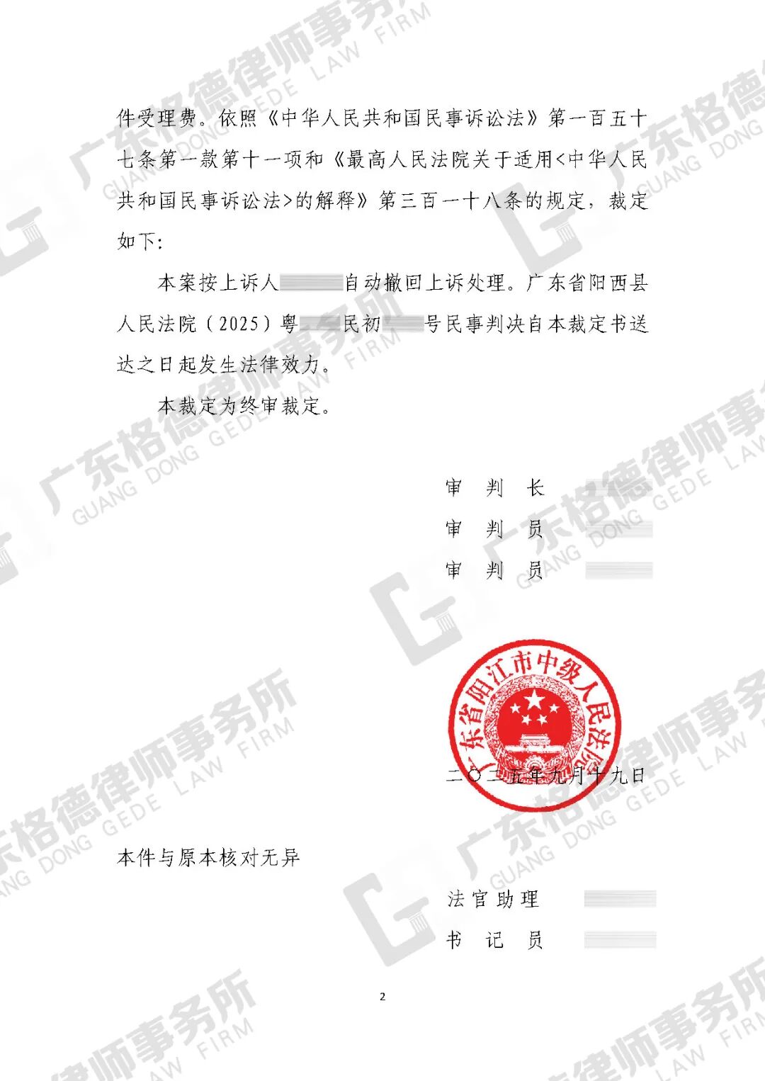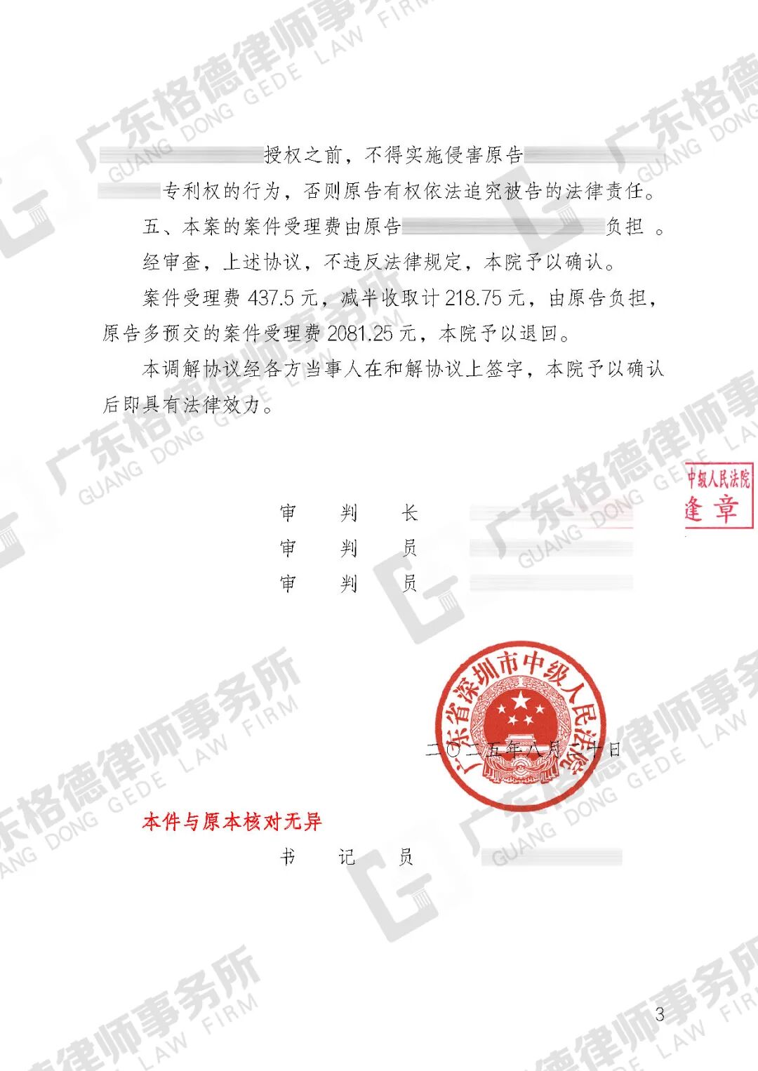 案件结果:在律师团队的积极协调下,双方达成和解,对方撤诉。