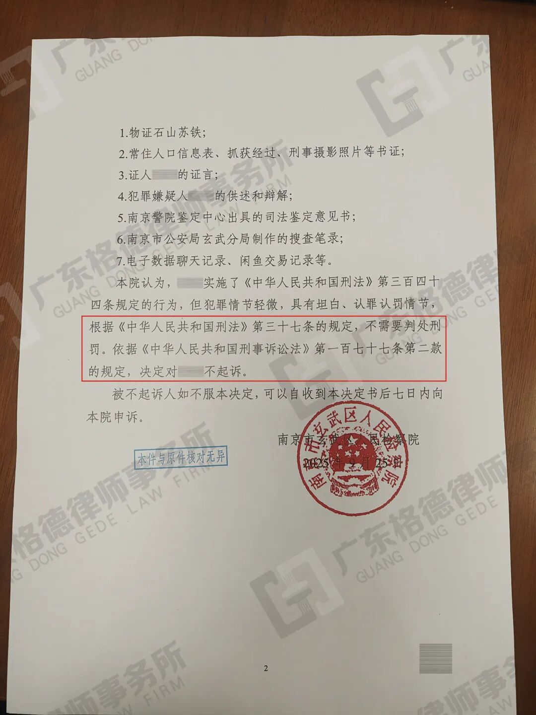 案件结果:律师团队成功在短时间内为当事人争取取保候审,并持续跟进案件进展。在补充侦查阶段中我方多次提交辩护意见,最终当事人获不起诉决定。