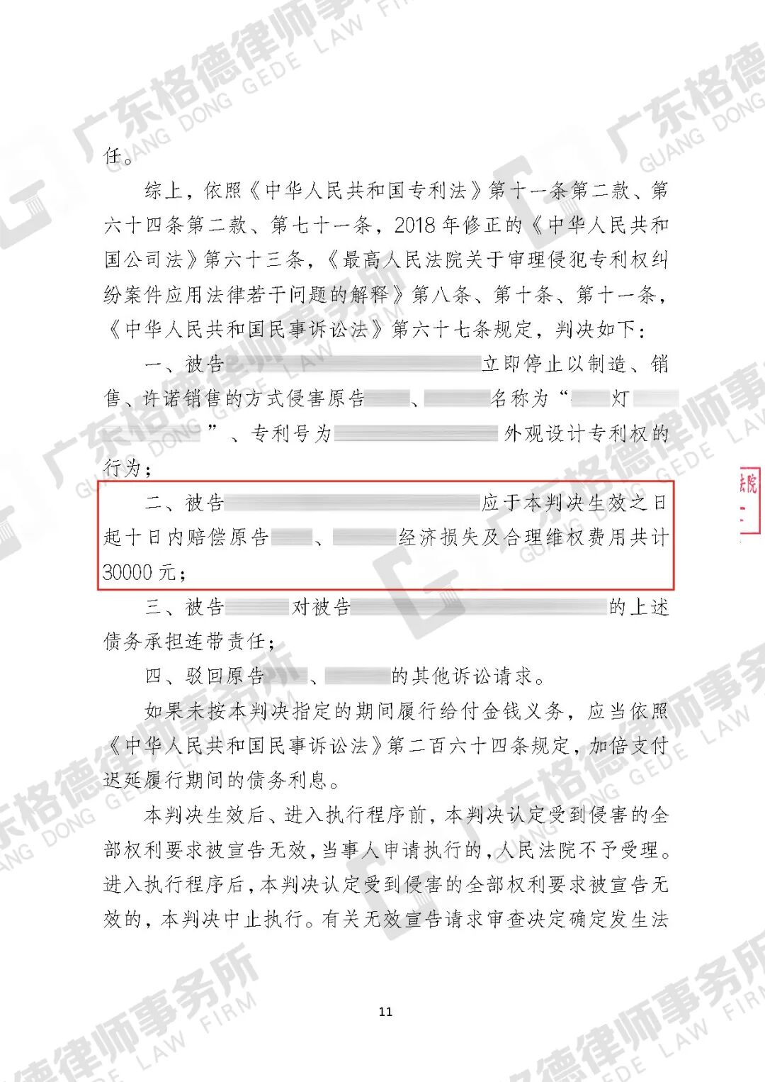 案件结果:判决当事人赔偿30000元,为当事人减损50%的赔偿金额。