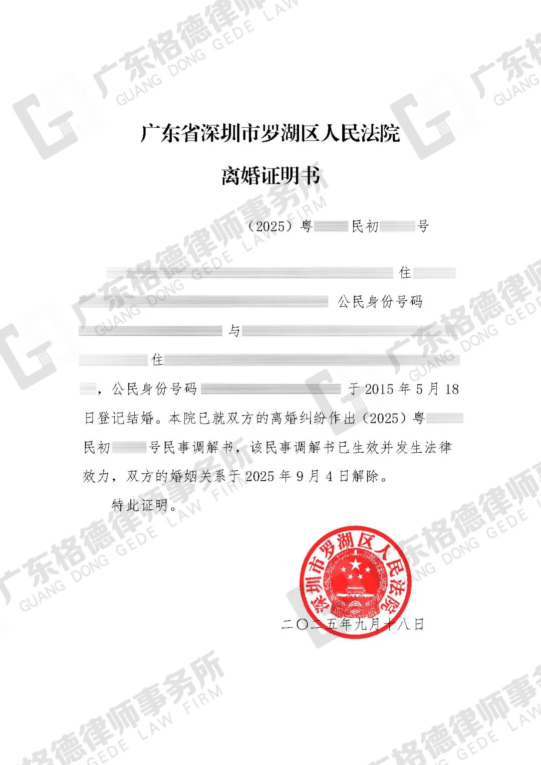 案件结果:律师团队代当事人提起离婚诉讼,并前往当事人丈夫所服刑的监狱参加了庭审。最终,双方成功调解离婚。