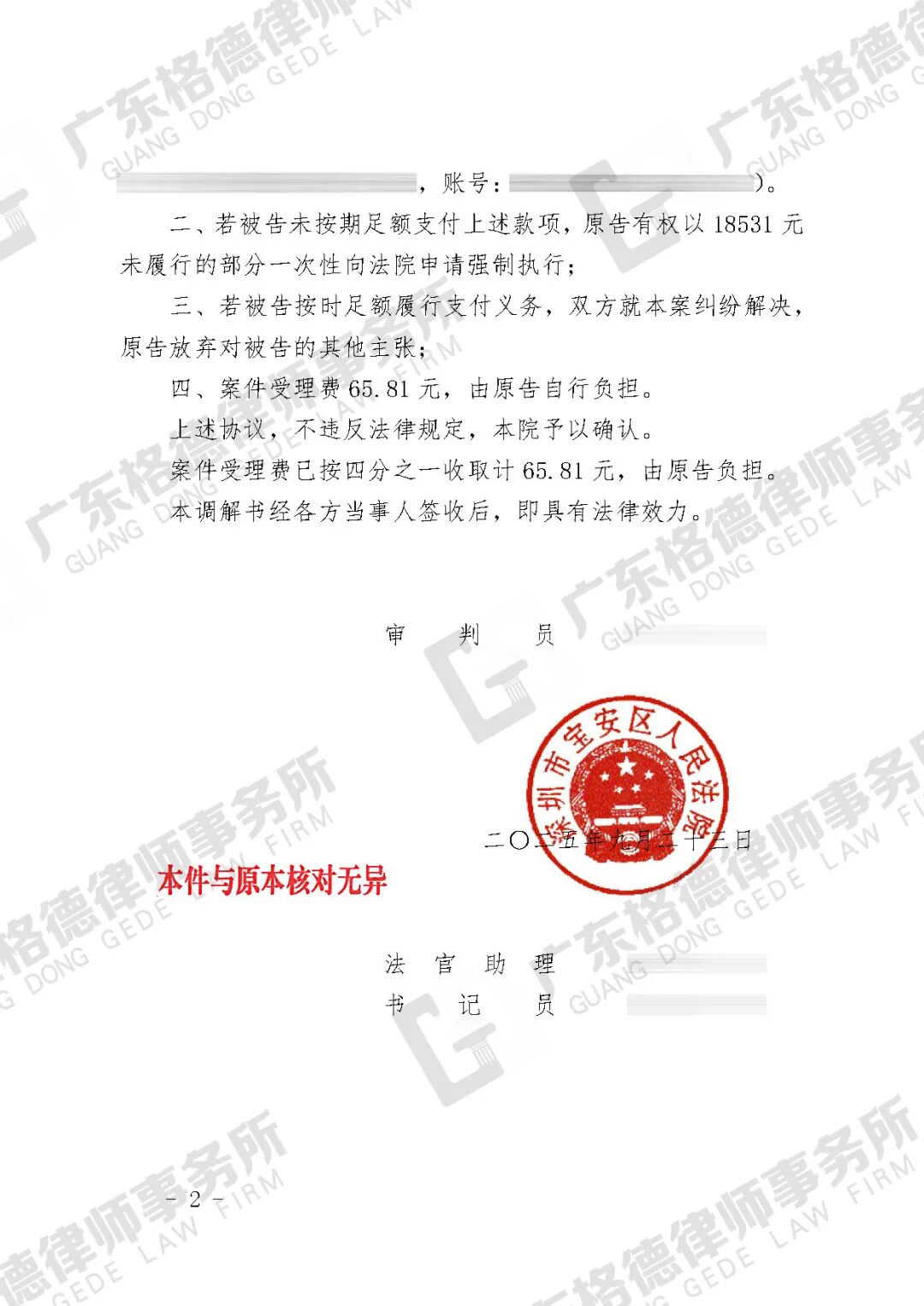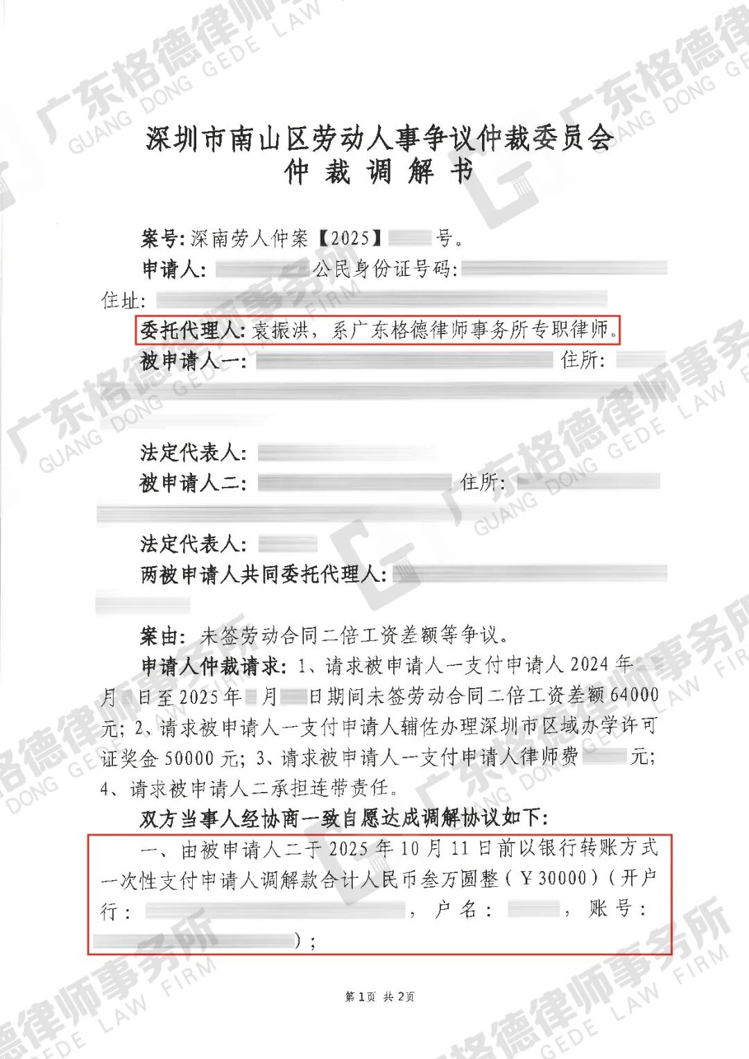 案件结果:双方协商一致达成调解,公司向当事人支付调解款30000元。